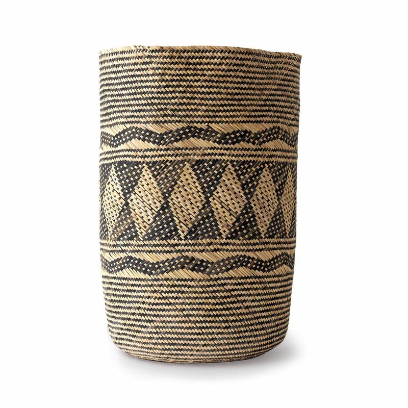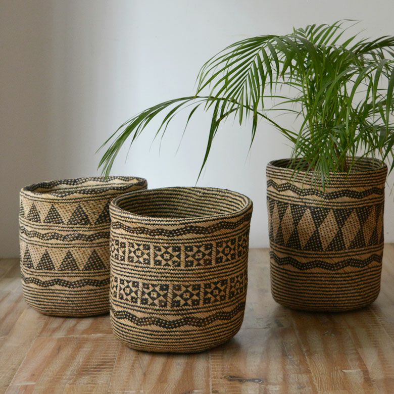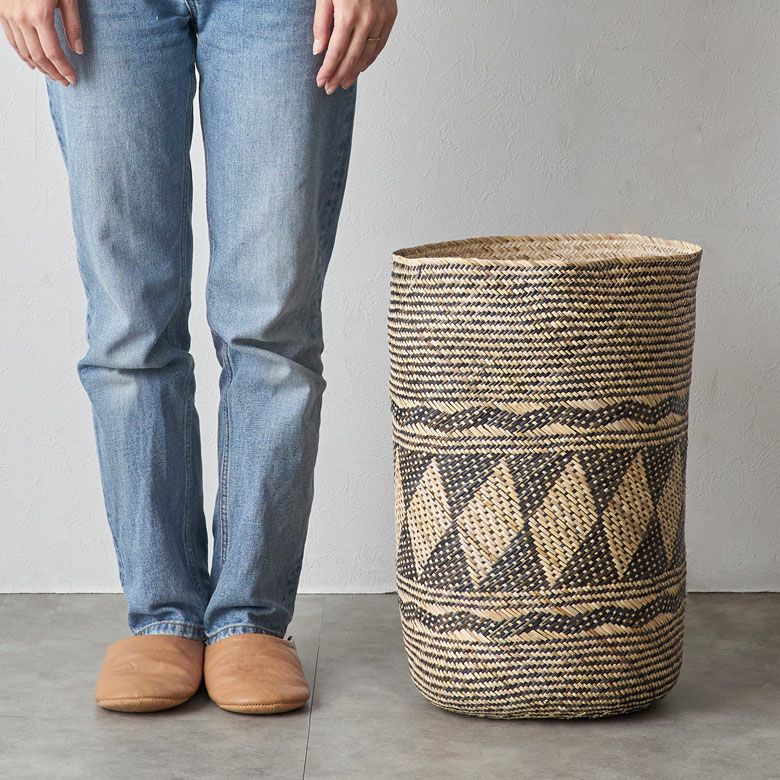 職人がひとつひとつ手作業で編んでいるバスケットは、複雑な幾何学模様が丁寧に編み込まれています。