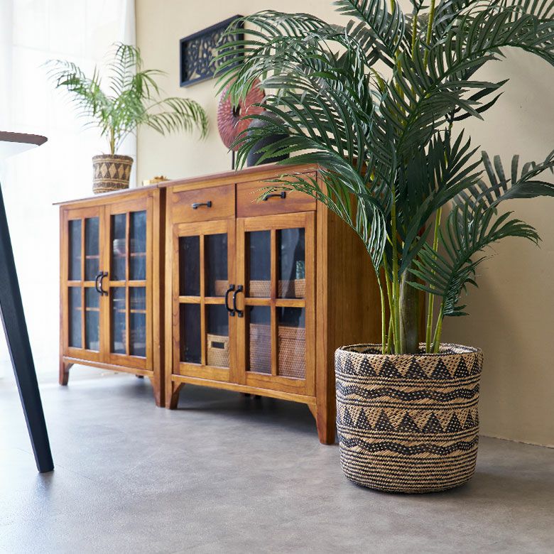 大きめサイズのグリーンを入れるのがピッタリなプランターカバー。 プランターカバーとして南国らしいグリーンを入れるとダイナミックな印象になります。縁を折り返すことができるので高さは調整可能。中に入れるグリーンに合わせて高さを調整して下さいね。
