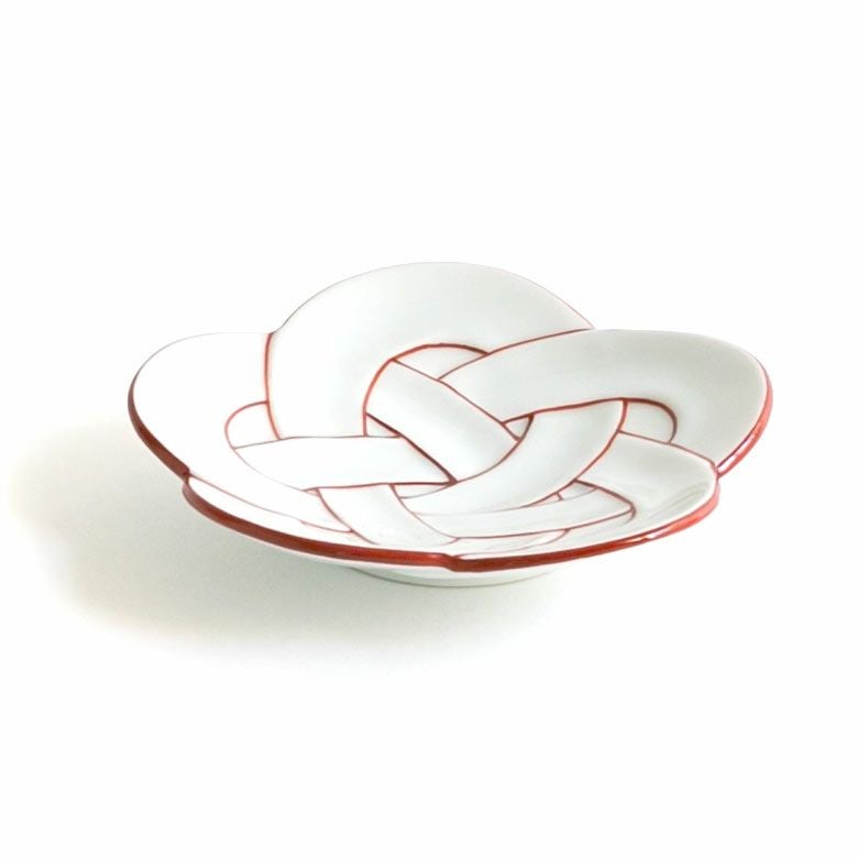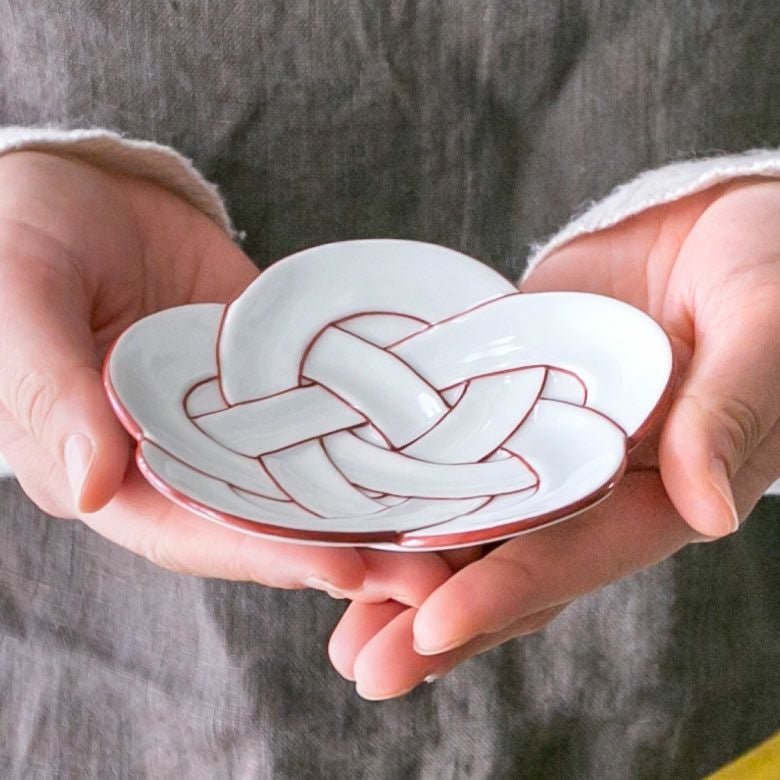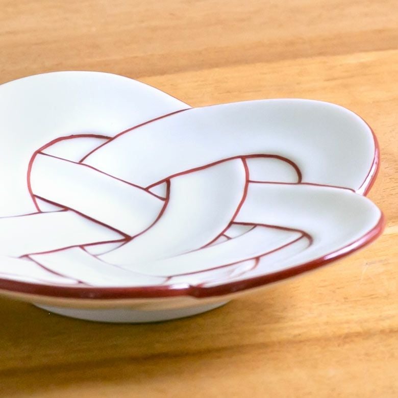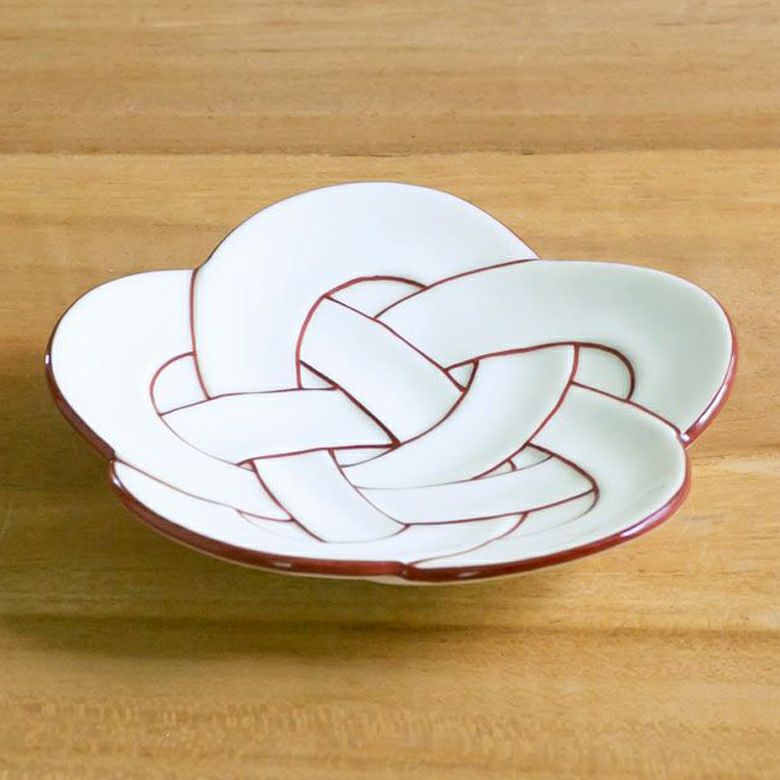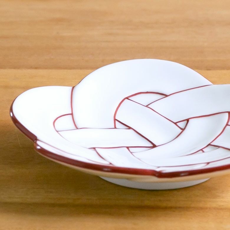 日本の伝統的な水引の結びをモチーフにした有田焼のお皿。