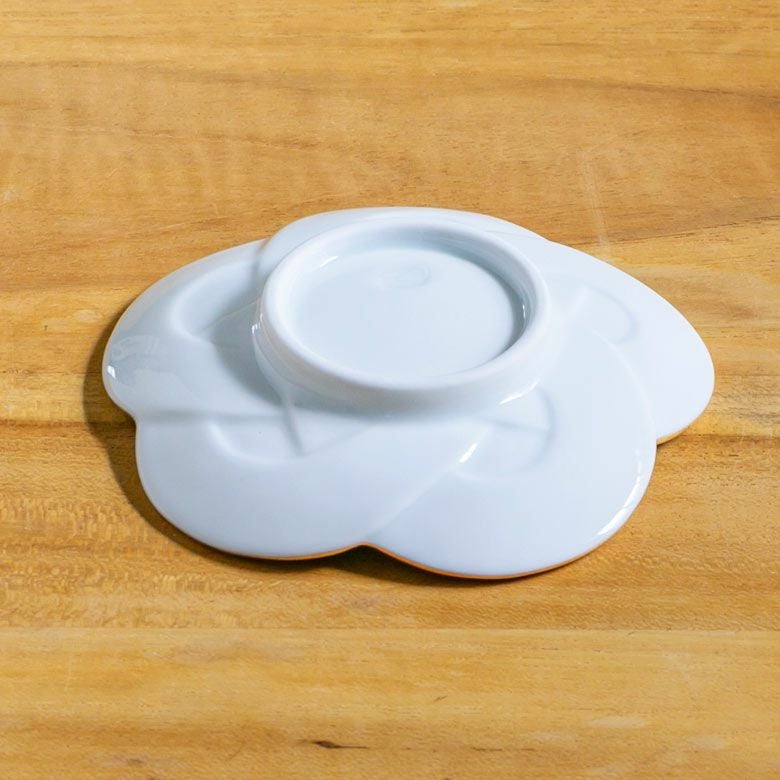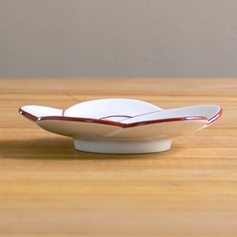 赤の縁取りが効いた梅の形をした手のひらサイズの小皿がかわいいです。
