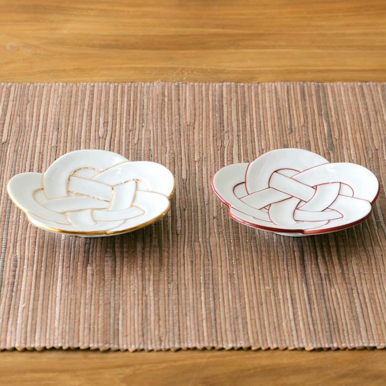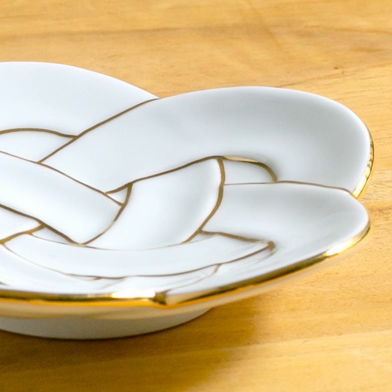 日本の伝統的な水引の結びをモチーフにした有田焼のお皿。