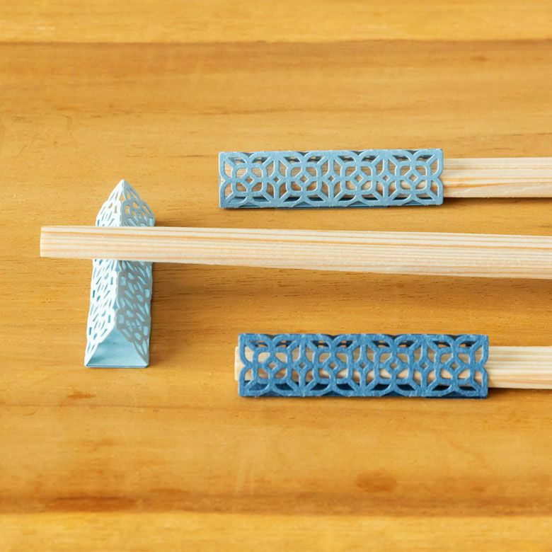 お手持ちのお箸で、お食事前は箸先を保護する箸袋のかわりに、お食事中はそのままお箸を休める箸置きになります。