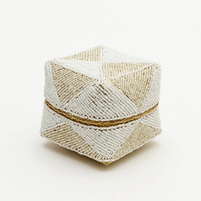 ビーズソカシダイヤ柄 白×ブルー >