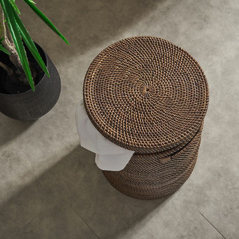 たっぷり収納で見た目すっきり アタとラタンで編まれたフタ付き大型バスケット 48L