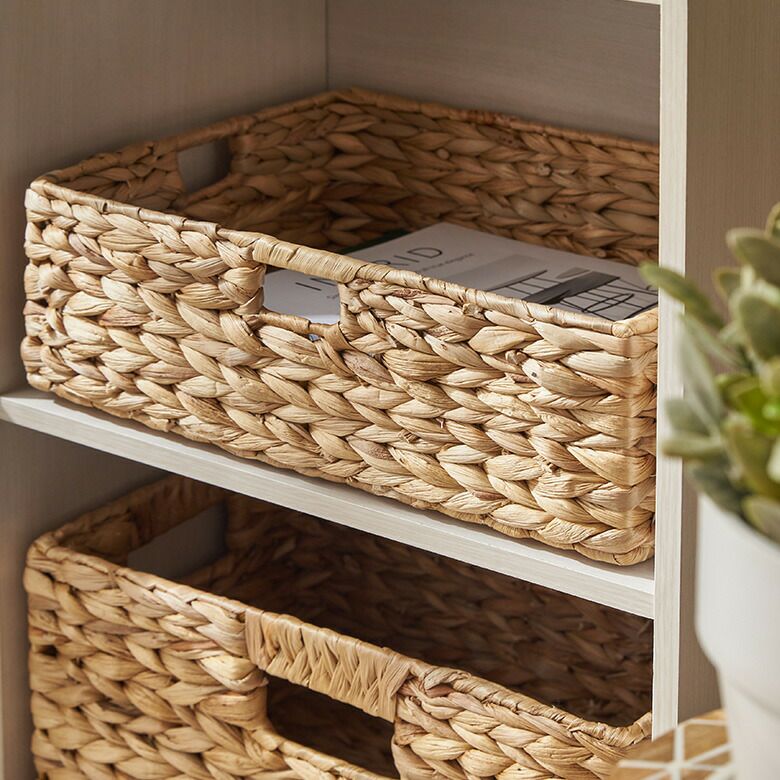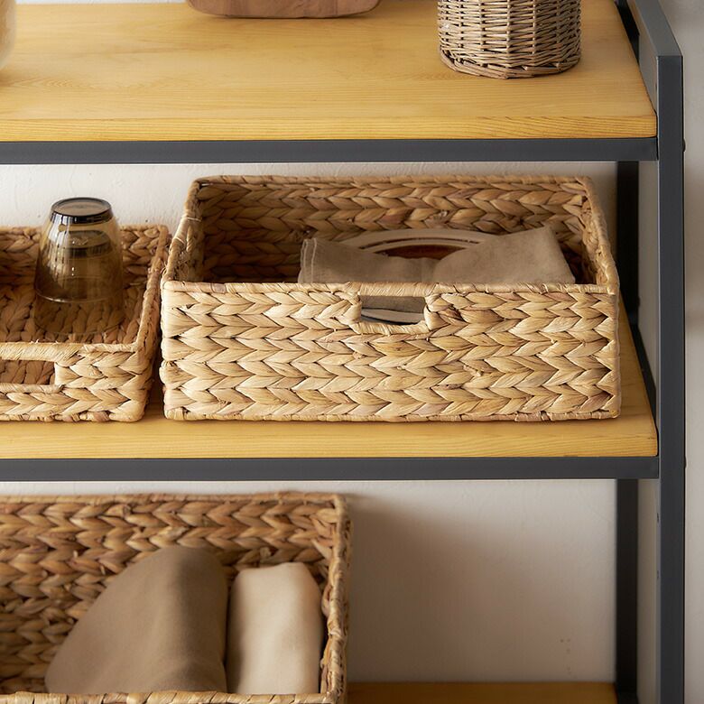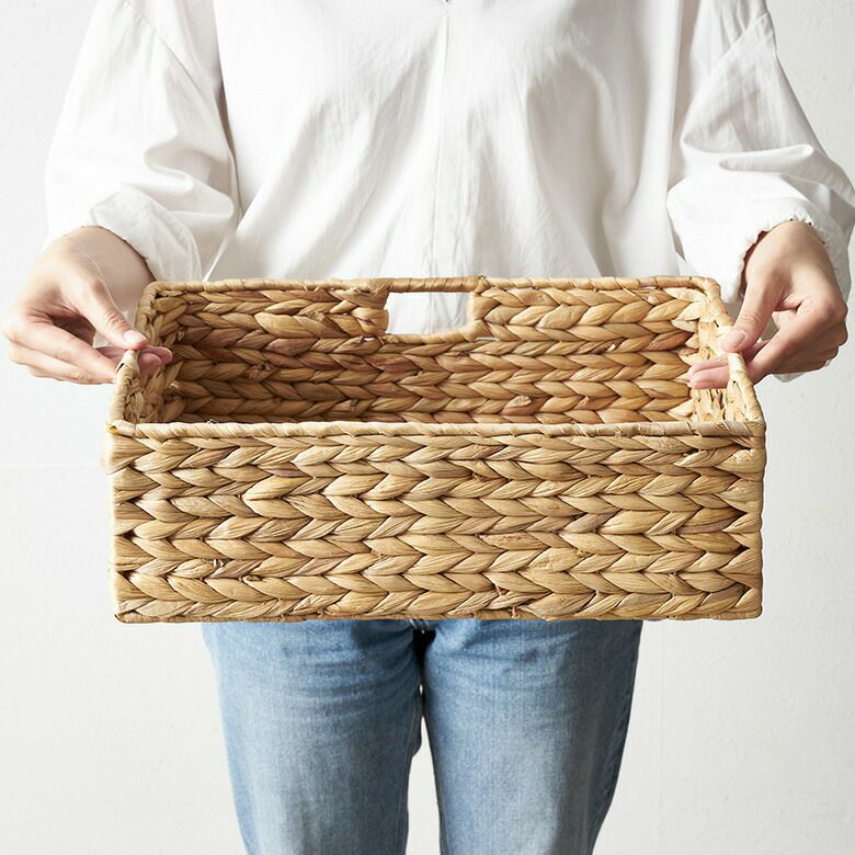 用途に合わせて選べる2サイズ展開となっていますので、サイズ違いでコーディネートもおすすめです。 こちらのLサイズは、A4クリアファイルや雑誌がぴったり。 デスク周りの整理用や、リビングでタブレットやゲーム機器入れにもお使いいただけます。 用途や置き場所に合わせて、サイズ違いで組み合わせると更に便利です。 ウォーターヒヤシンスで手軽に統一感のあるインテリアを作ることができます。
