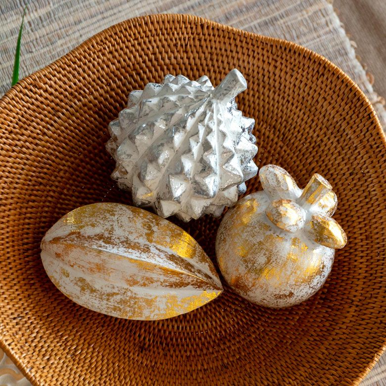 コロンとした形が可愛らしい、手のひらサイズのマンゴスチンオブジェ。