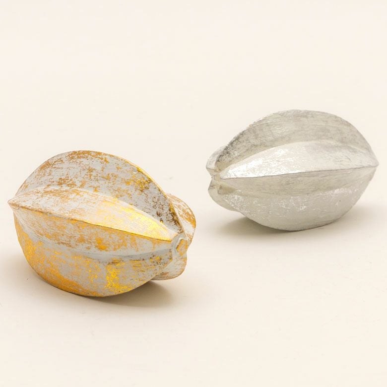 ひとつひとつ職人の手仕事でゴールドとシルバーの箔を押して作られており、