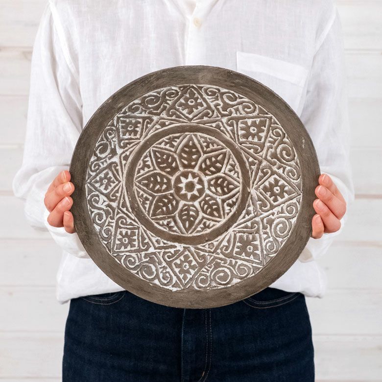 表面に施されたアジアンオーラが漂うミステリアスな彫刻はインドネシア・スンバ島に伝わる伝統的な文様です。