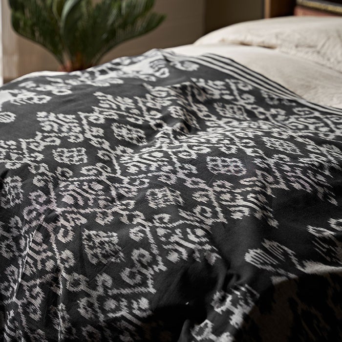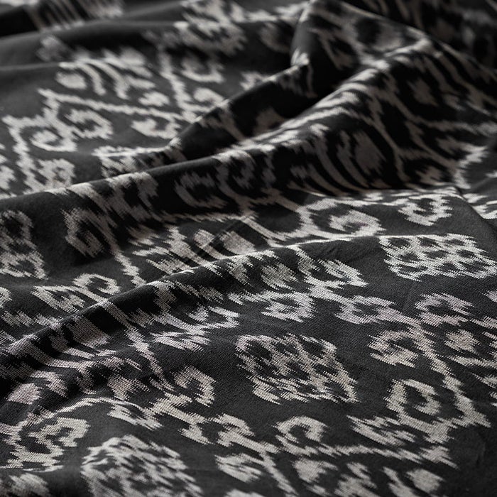 Ikat(イカット)はインドネシア語で「縛る・結ぶ」という意味。染めた糸を織って模様を表現する伝統的な織物です。イカットの特徴はかすれたような奥行きのある模様。この独特な風合いは、「絣(かすり)」という技法を用いられることにより生まれます。