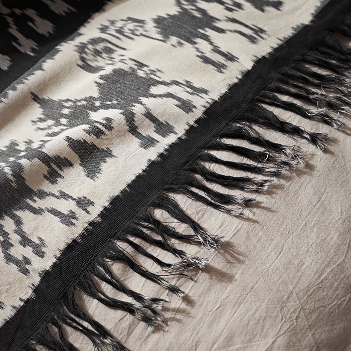 イカットの両端にはフリンジ。 さりげないアクセントに。