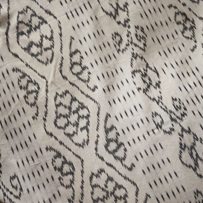 Ikat(イカット)はインドネシア語で「縛る・結ぶ」という意味。染めた糸を織って模様を表現する伝統的な織物です。イカットの特徴はかすれたような奥行きのある模様。この独特な風合いは、「絣(かすり)」という技法を用いられることにより生まれます。