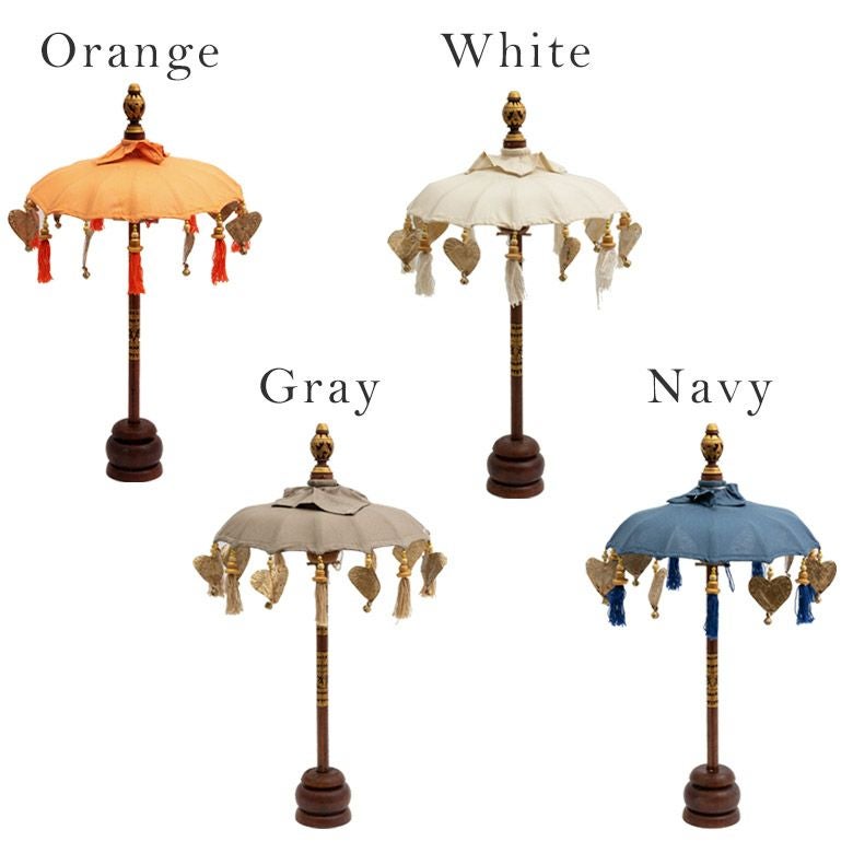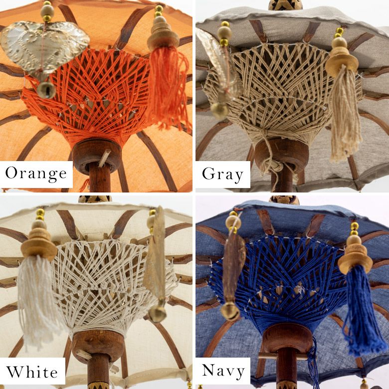 傘の形や色、柄の長さなどに若干の違いがございますが、バリ島の職人さんの手作りならではの特性としてお楽しみください。