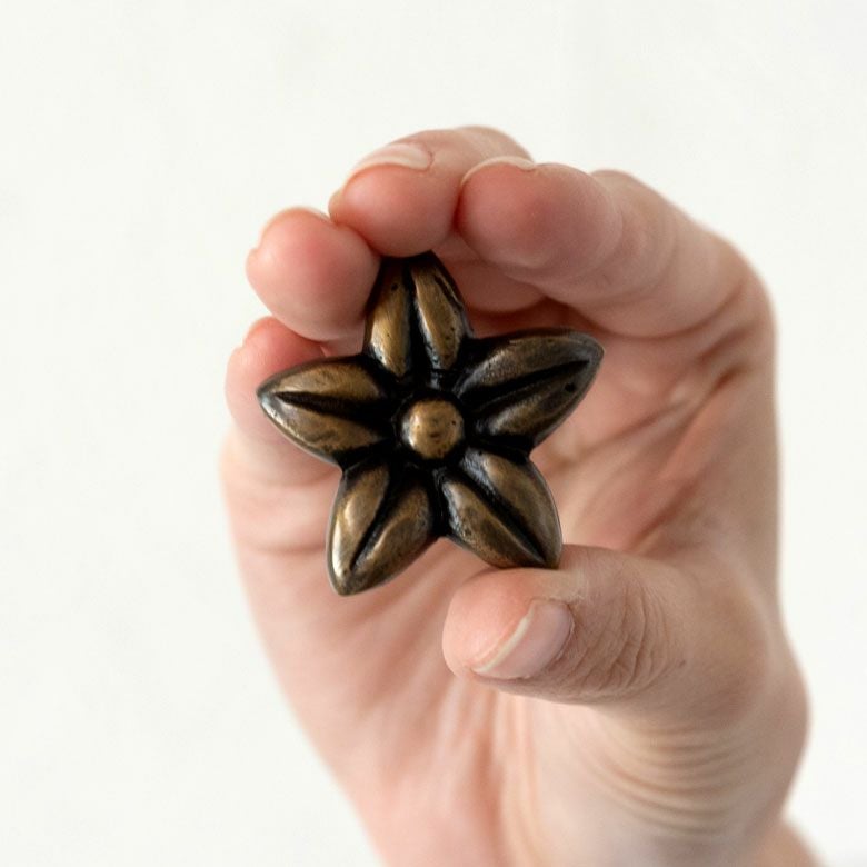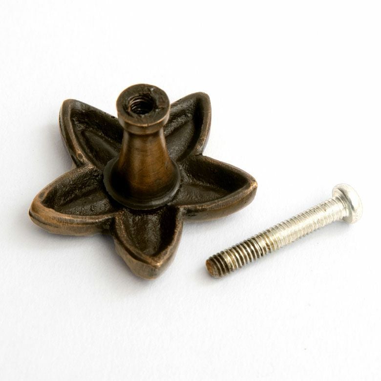 ※ハンドメイドのため、多少のサイズの誤差や歪みなどがある場合がございます。 ※色味や風合いが一つ一つ微妙に異なる場合がございますが、アンティーク調の風合いとしてお楽しみください。 ※真鍮製のため酸化による色の変化があります。真鍮の特性としてご理解ください。 ※サービスでネジを1本付けておりますが、取付個所によっては付属のネジでは長さが足りない、または長すぎる場合がございます。ホームセンターなどでご相談頂き、必ず取付部にあった市販のネジを別途ご用意ください。 ※こちらの商品はあくまで装飾品のため、あまりに重い引き出しや扉での使用はお勧めできません。また、ワッシャーを使用することをお勧めします。 ※石膏ボードでの使用は強度の観点からお勧めはできませんが、ホームセンターで市販のアンカーなどをご購入いただき、取り付け箇所に合わせた方法でご使用ください。取付部の損傷などがあった場合も当社では責任を負いかねますので、あくまでもお客様のご判断でご使用ください。 ※ハンドメイドのため、個体差がございます。ハンドル側のネジ穴も多少の誤差がありますので、ご理解の上ご使用ください。 |