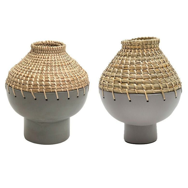 テラコッタ×シーグラスの異素材を組み合わせたフラワーベース。