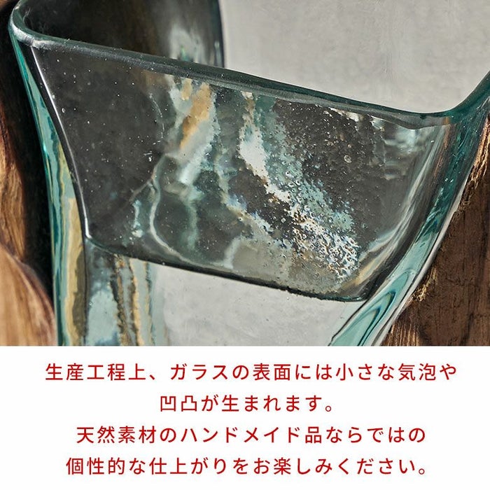 | ご注意 | ※天然木の自然な状態を活かして製作された商品のため、小さな穴、ひび割れ、傷や染み等が見られます。 ※ハンドメイドのためサイズ・形・色合い・デザインには個体差がございます。 ※天然の木そのものの形を活かしているため、サイズ・形が写真と異なる場合があります。 ※商品の形やサイズはお選びいただけません。 ※木の形に合わせてガラスを吹きつけておりますが、完全な安定感がある商品ではございません。商品によって多少のグラつきが出る場合がございますので予めご了承ください。 ※木にガラスを吹きつけた後の黒く焦げ付いた跡がございますが、これは製造工程上出来るものです。 ※ガラスの中に気泡が含まれる場合があります。 ※ガラスの底にザラつきがございますので、お取り扱いにご注意ください。 ※リサイクルガラスを使用しておりますので、色味に多少の個体差があります。 ※モニターの種類やパソコンの環境により、実際の商品のお色と若干異なる場合がございます。 |