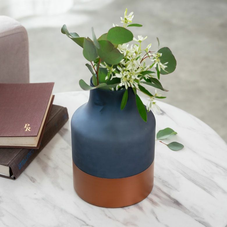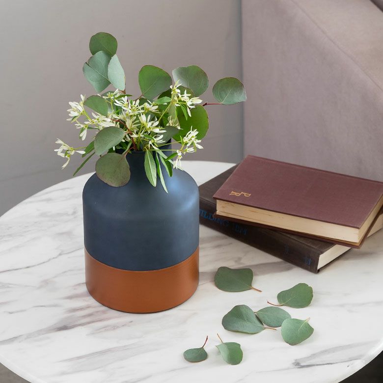 ボトムのコッパーカラー(銅色)がフラワーベース全体を引き締めてくれて、洗練された雰囲気に。