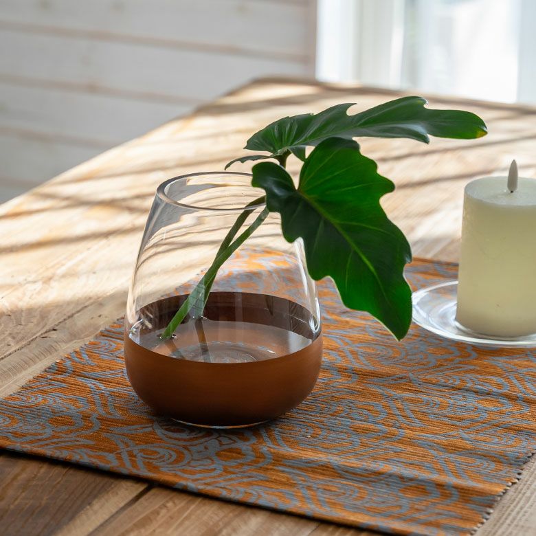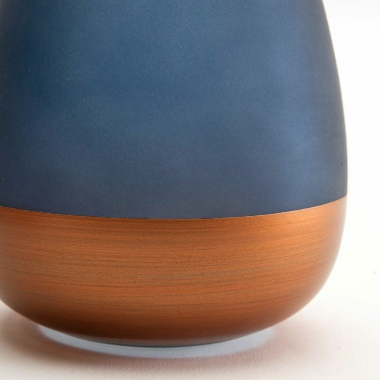 コッパー(銅)カラーのボトムがアクセントとなり、シンプルに一輪花やグリーンを入れるだけで絵になるフラワーベース。