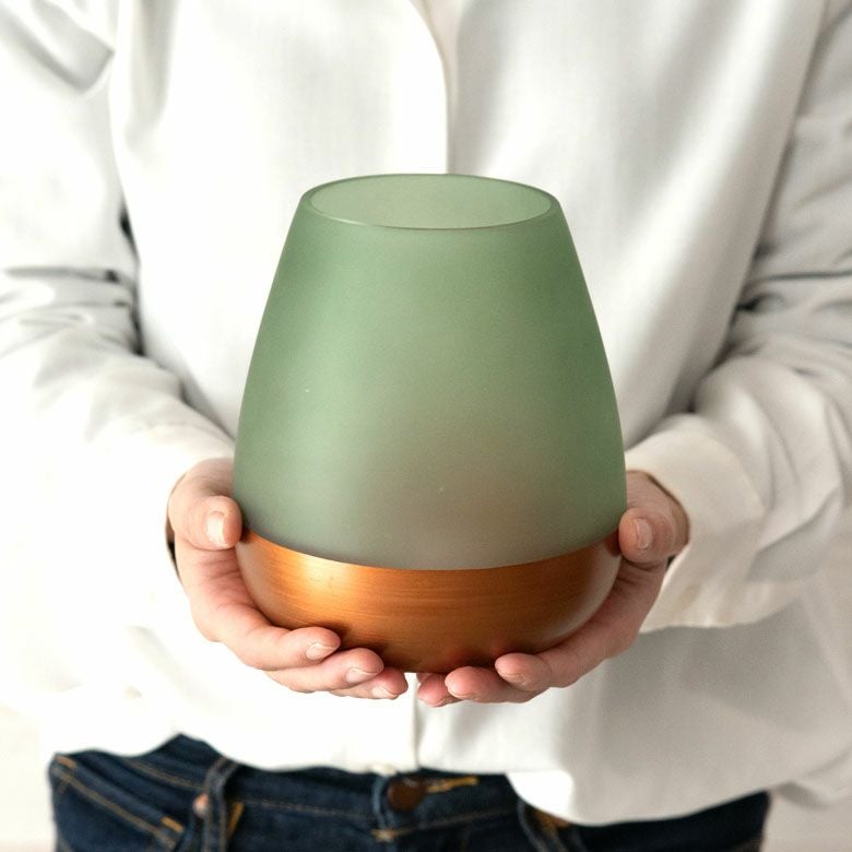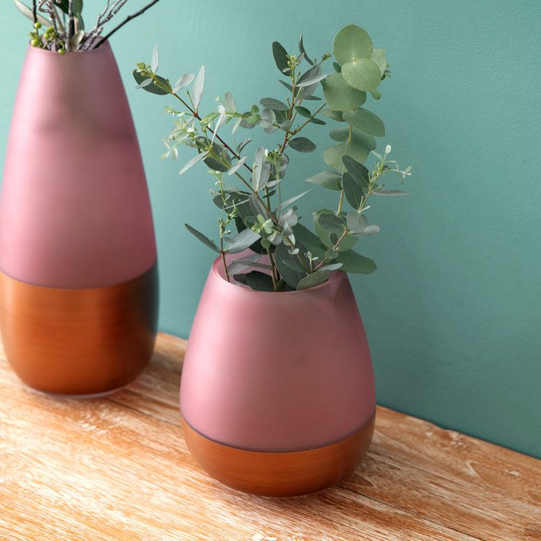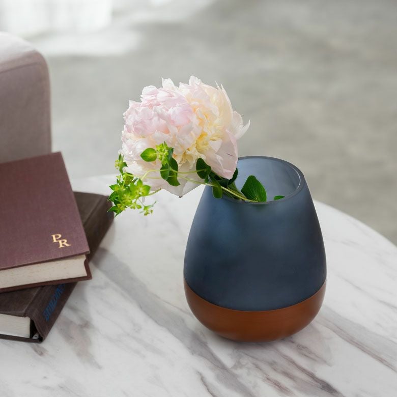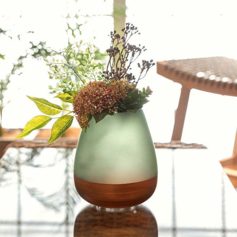 選べる4色のフラワーベースの中で一番小さく飾りやすい、コクーンショートタイプ。ボトムのコッパーカラー(銅色)がフラワーベース全体を引き締めてくれて、洗練された雰囲気に。