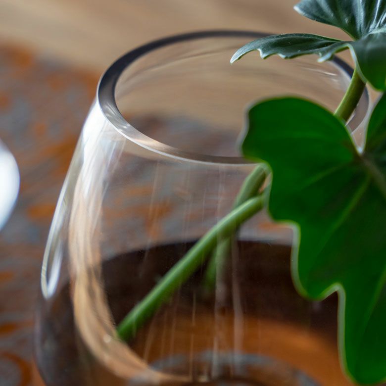 コロンとした形がかわいいこちらのタイプは狭いスペースにも置けるので、キッチンや玄関などのちょこっとお花飾りに最適な花瓶です。また、ダイニングテーブルに載せても大き過ぎず視界を遮らない大きさ。
