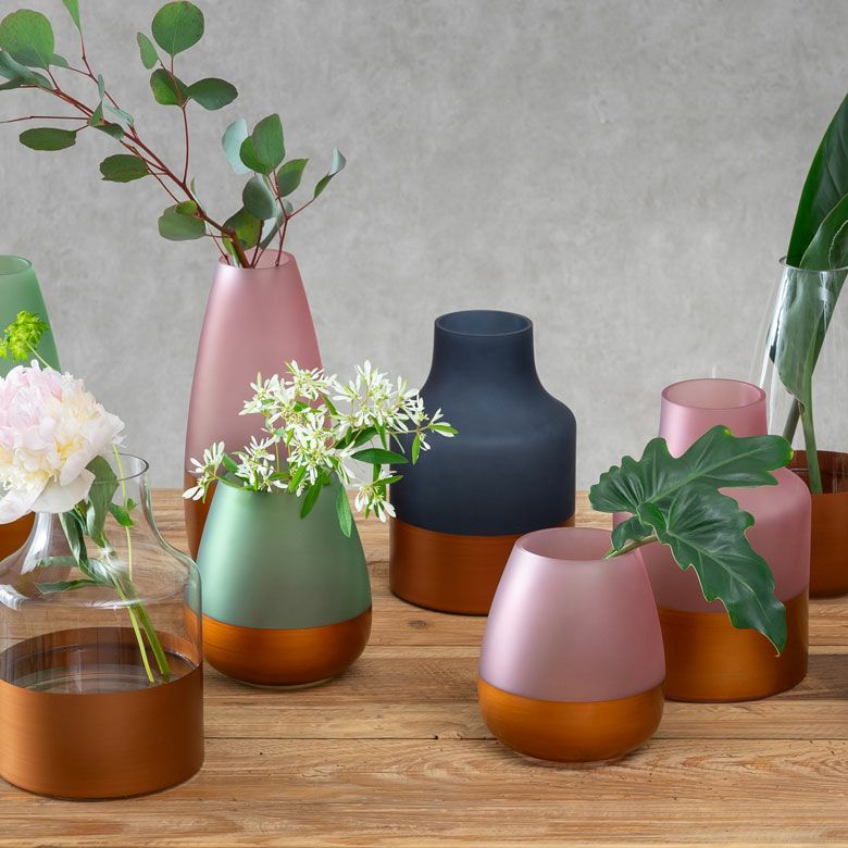 ネイビーは和のお花やグリーンを合わせるとモダンに決まります、グリーンは白や黄色のお花を爽やかに生けることができます。また、ピンクはお花が入っていなくても花瓶だけでお部屋のアクセントに。クリアはシンプルでどんな部屋にも馴染む万能フラワーベースです。チューリップや水仙、パンジーやクリスマスローズを飾ってみてはいかがでしょうか。