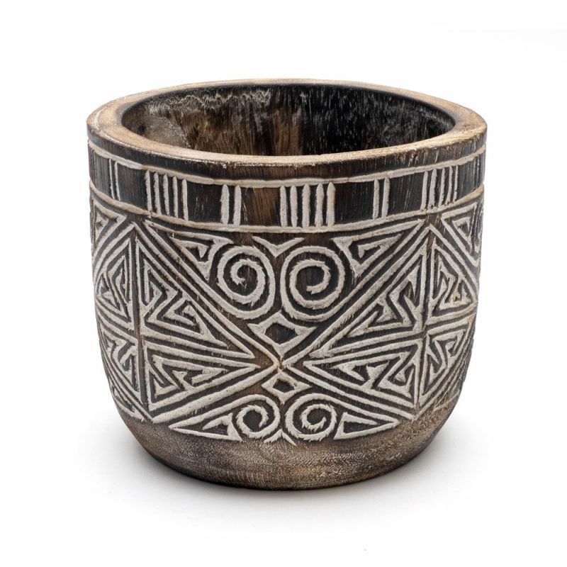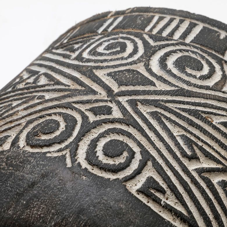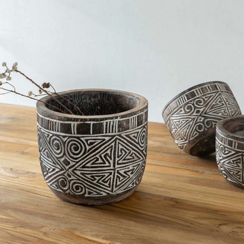 表面に施されたアジアンオーラが漂うミステリアスな彫刻はインドネシア・スンバ島に伝わる伝統的な文様です。