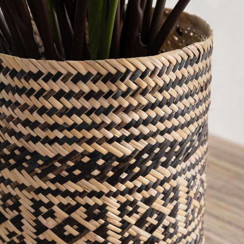 まるで着物の和柄のようなこちらのプランターカバーは、白がメインのお部屋に置くとバスケットが引き立ち