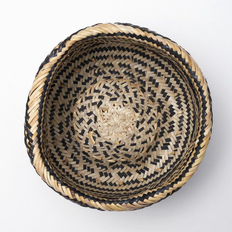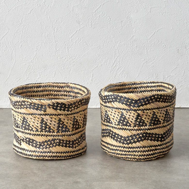 職人がひとつひとつ手作業で編んでいるバスケットは、複雑な幾何学模様が丁寧に編み込まれています。