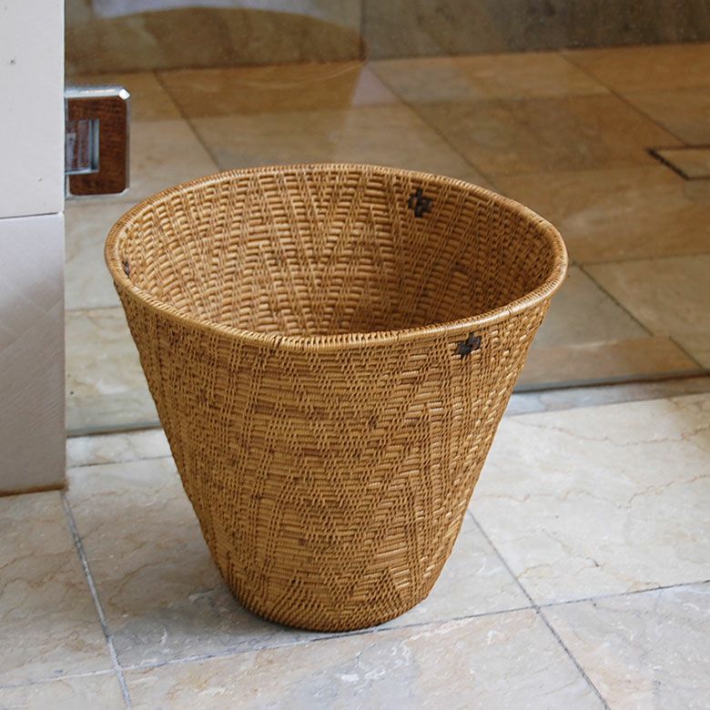 円錐形のシンプルなデザインのバスケットはごみ箱にちょうどいいサイズ。