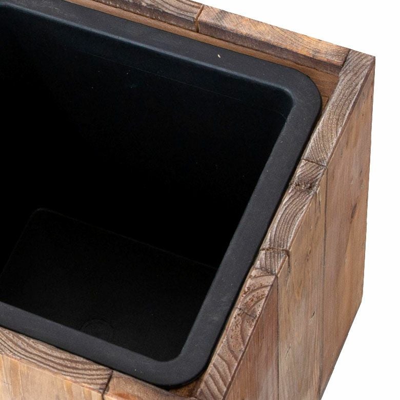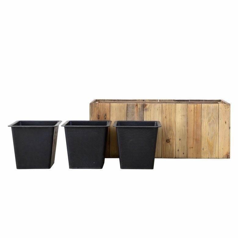 | ご注意 | ※インナー受け皿は底に穴が開いていないタイプです。直接土を入れて植木鉢としての利用はしないでください。 ※リサイクル木材を使用の為、釘や抜いた後やキズ、汚れがございます。 ※天然木仕様の為、色味や木目に個体差があります。 ※屋外でも使用可能ですが、木材のため劣化が早まることをご了承の上でご使用下さい。 ※必ず入れる鉢の大きさをご確認の上、お買い求めください。 |
