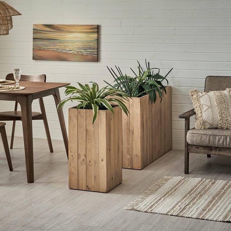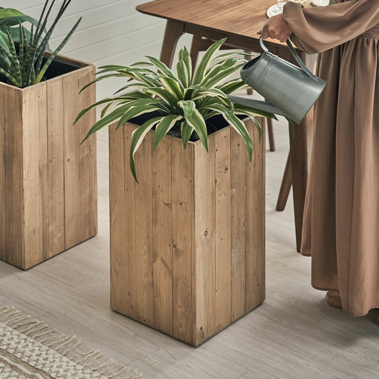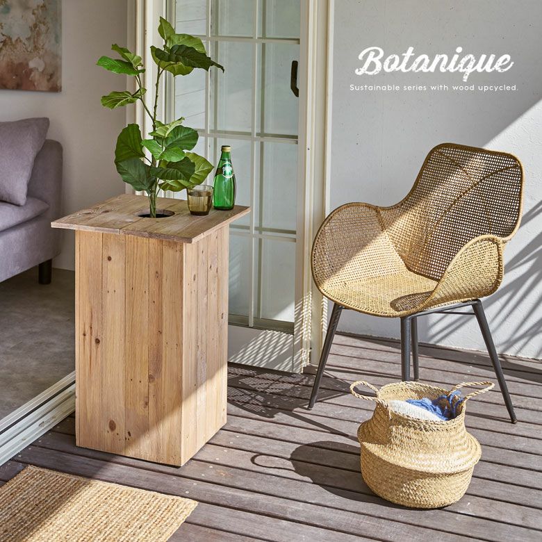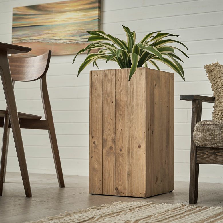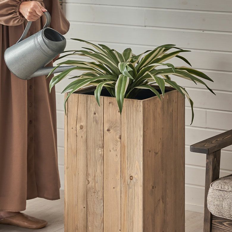 観葉植物もサスティナブルに楽しむ、リサイクルウッドのプランターカバー。
