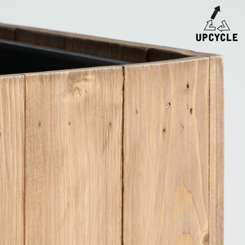 こちらのプランターカバーは、アップサイクルのパインウッド材を使いました。