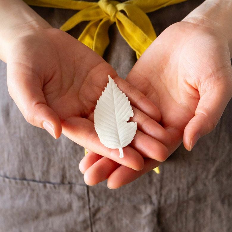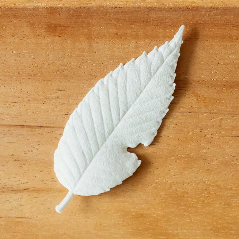 ケヤキの葉っぱをモチーフにした紙のお香。置いて香り、焚いて広がる、新しい和紙のお香です。
