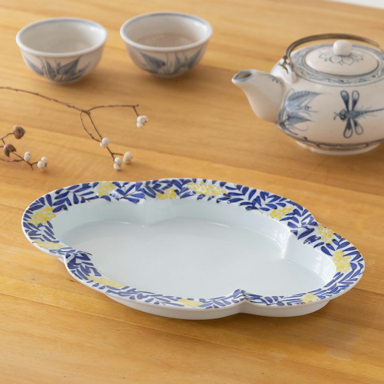 江戸時代の器、『木瓜皿』の形を参考にできたシリーズ。全て手描きで描かれています。