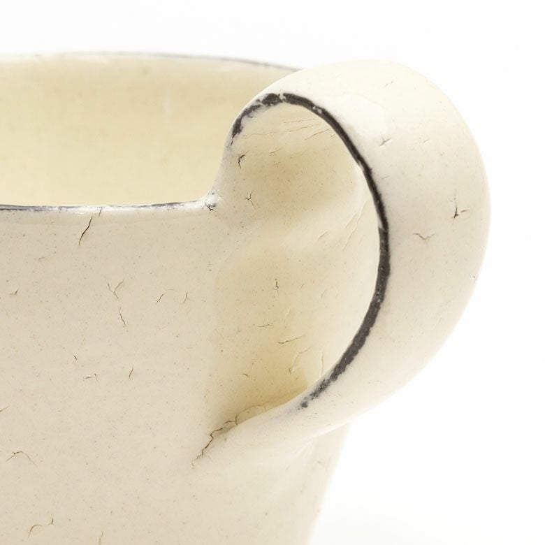 ホワイトはハンドルが縁に近い高い位置にあり表面は所々にひびのような模様があります。