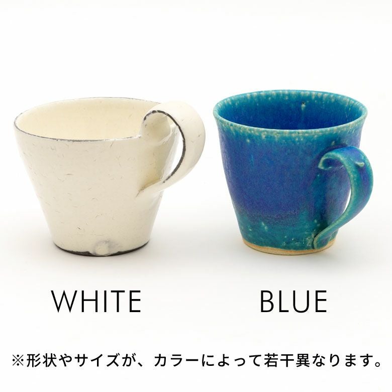 ホワイトとターコイズでデザインも質感もそれぞれ違っていて爽やかな2色ですが味わい深いマグです。