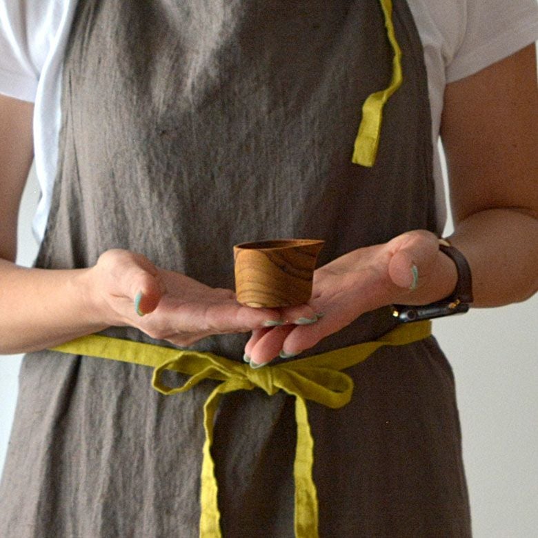 木の素朴さがミルクやはちみつとピッタリ。このミルクカップを添えると一気にカフェの朝食のようになるチークのカップ。