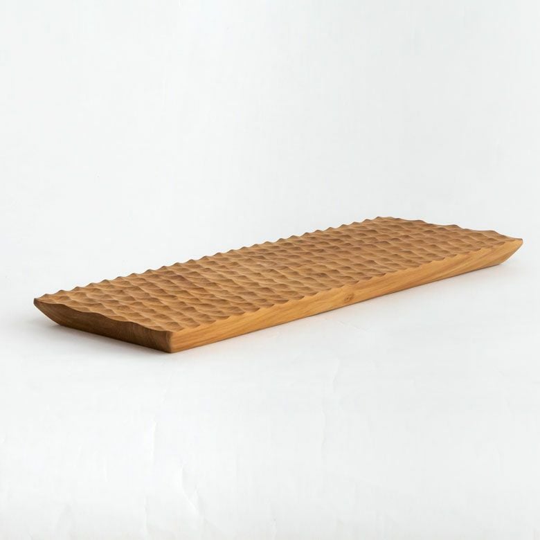 チーク無垢材の1枚板を丁寧に彫った贅沢なプレート。