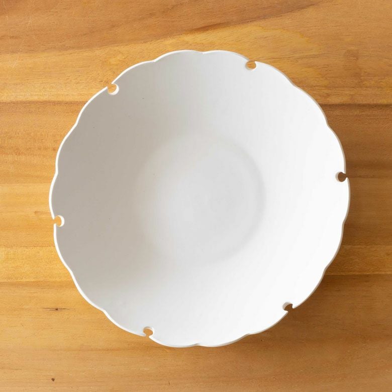 日本の古典的な文様である雪輪柄を器で表現しています。