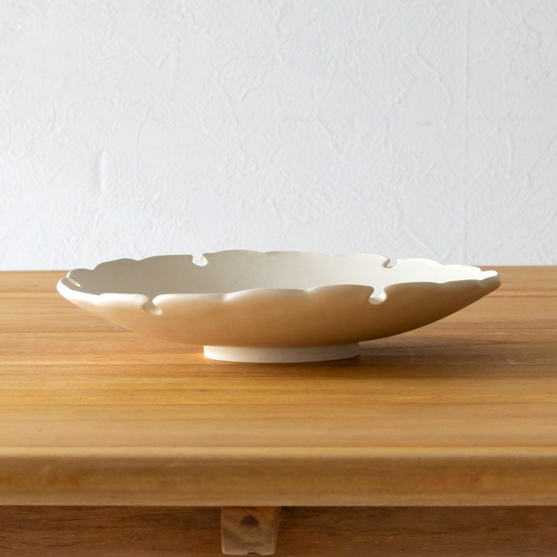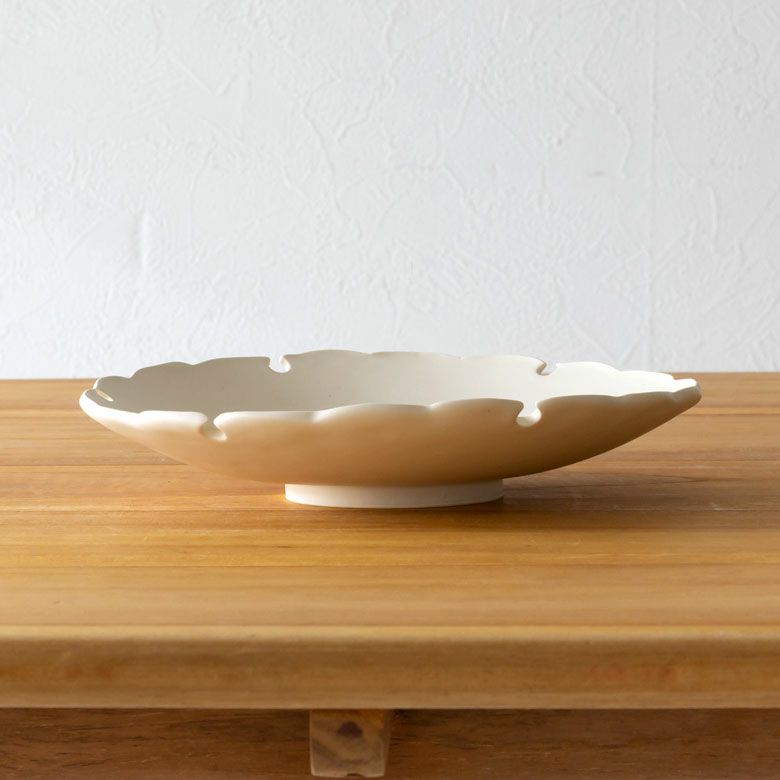 芦屋の陶芸家 吉田正和氏(ヨシダポタリ)作、タタラ成形による雪輪型のお皿。
