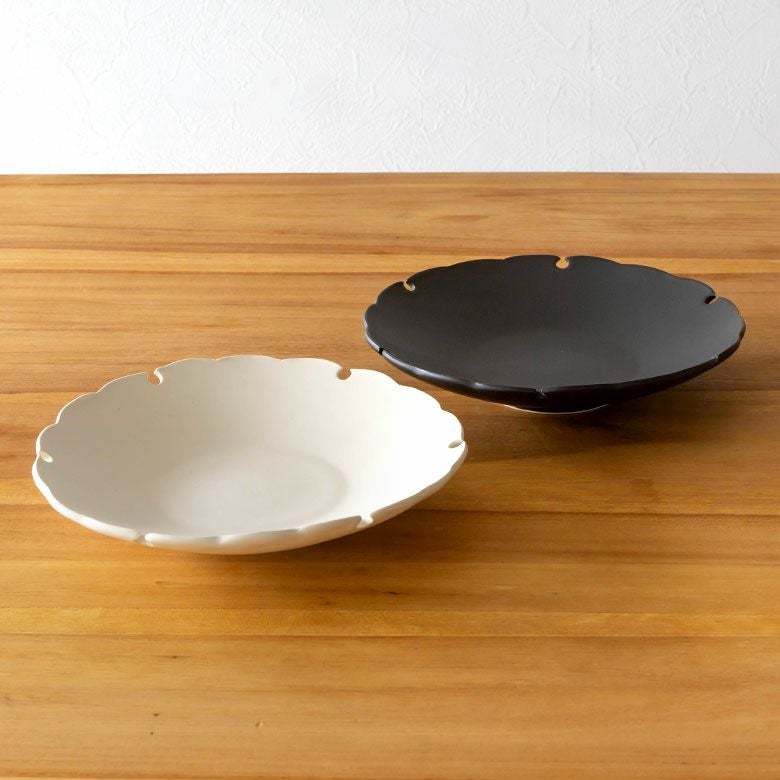 釉調はマットな質感の白と黒。裏側畳付のみ土見せとなっています。