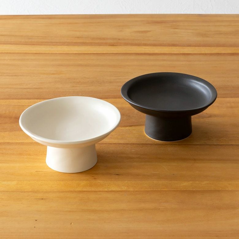 釉調はマットな質感の白と黒。裏側畳付のみ土見せとなっています。