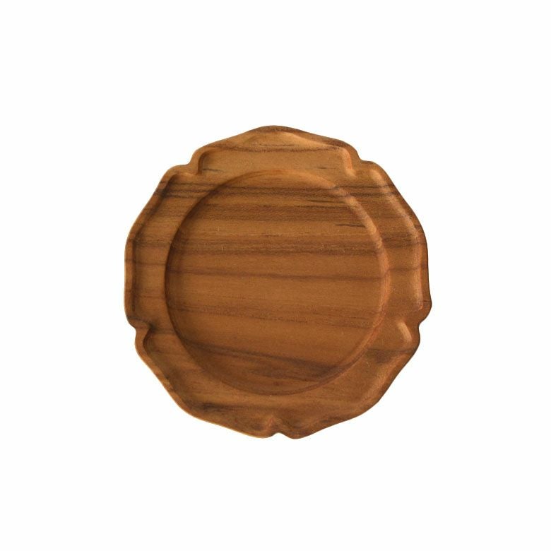 チークでできた輪花プレートは、かわいさと実用性を兼ねたミニプレート。