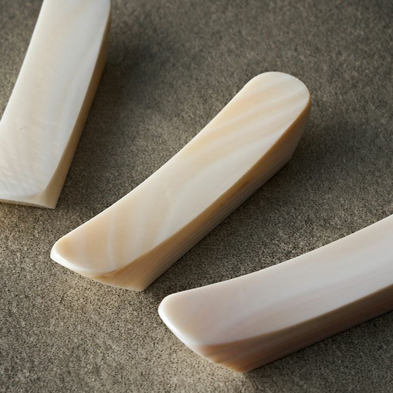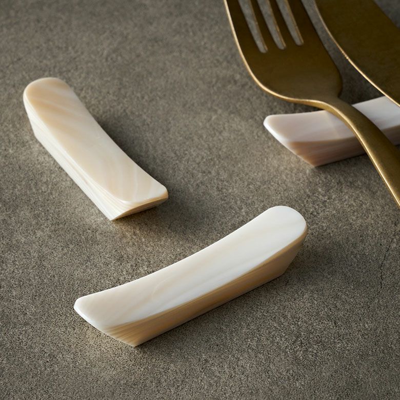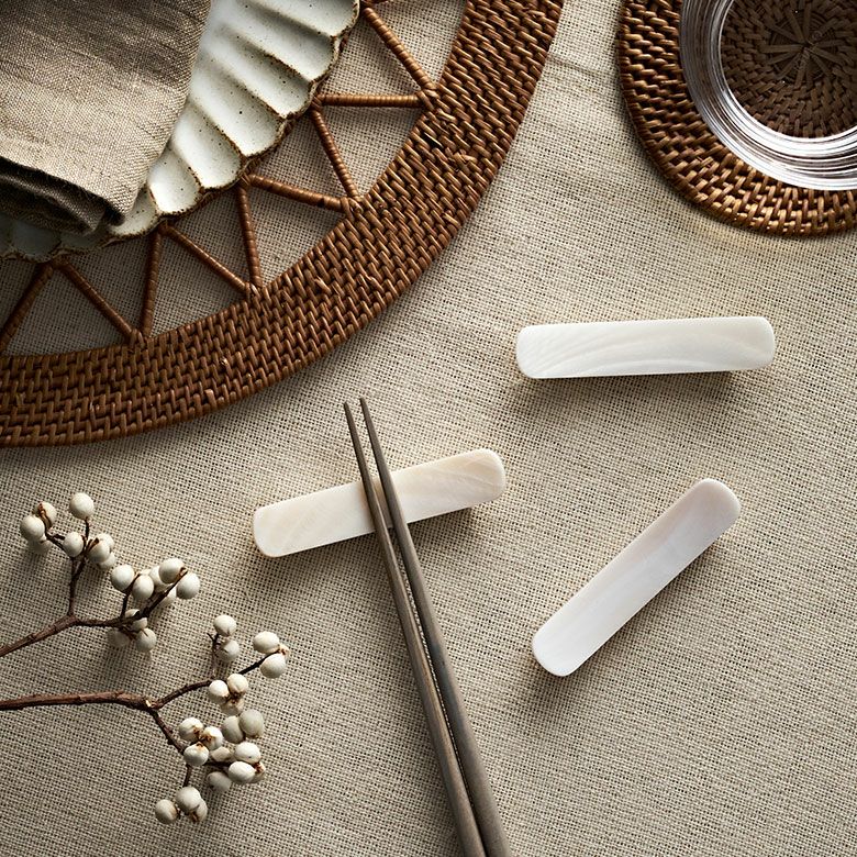 シェルの艶とシンプルなフォルムがどんなシーンにも合います。フォーク・ナイフだけでなく、お箸とスプーンを置いたり、使い方は自由。テーブルの美しいアクセントとなってくれます。