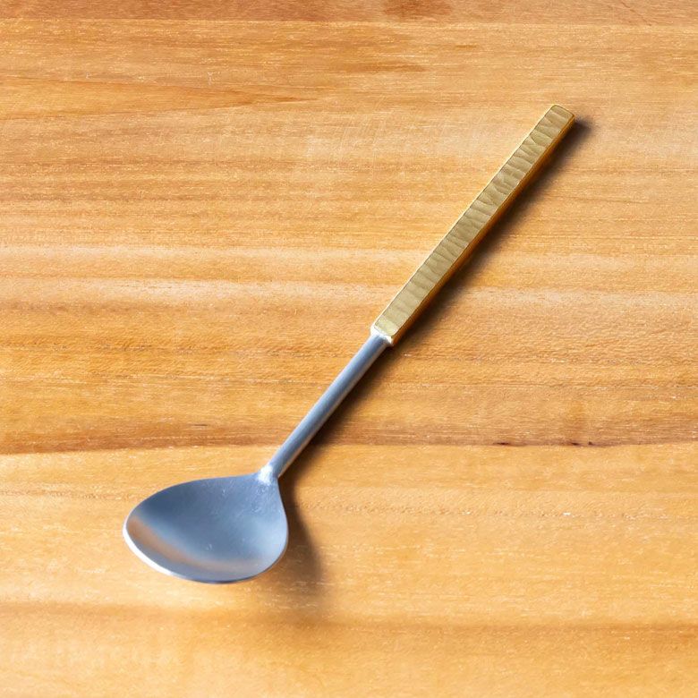 一般的なティースプーンより少し持ち手が長いサイズなのでマグカップにちょうどいい長さです。深さのあるプリンやゼリーも最後までキレイに食べられます。また、スープスプーンより一回り小さいので、一口サイズのスープや茶わん蒸しなどにもピッタリです。フォークMとのセット使いも◎