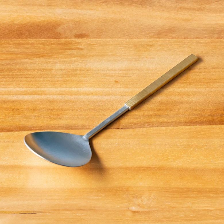 金属の独特な風合いや美しさが表現され、時間の経過とともに変化するところも魅力です。そのため、飽きのこないデザインで長くお使いいただけます。表面の仕上げは、お手入れがしやすいようにマットな仕上げで、落ち着いた金属の色味が生かされています。