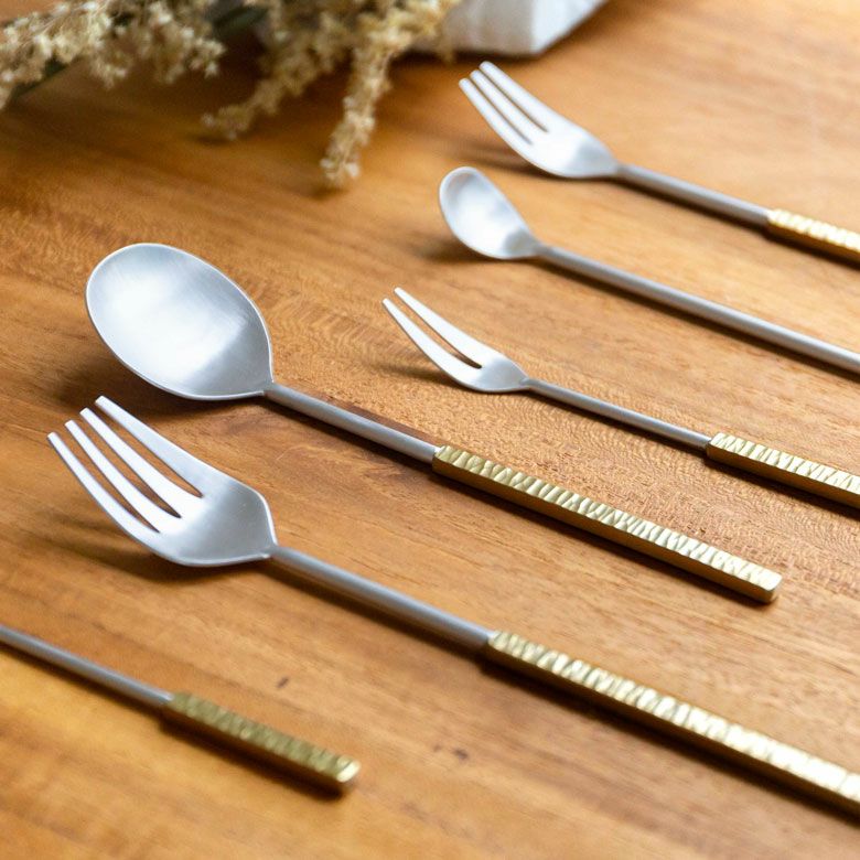 金属の独特な風合いや美しさが表現され、時間の経過とともに変化するところも魅力です。そのため、飽きのこないデザインで長くお使いいただけます。表面の仕上げは、お手入れがしやすいようにマットな仕上げで、落ち着いた金属の色味が生かされています。