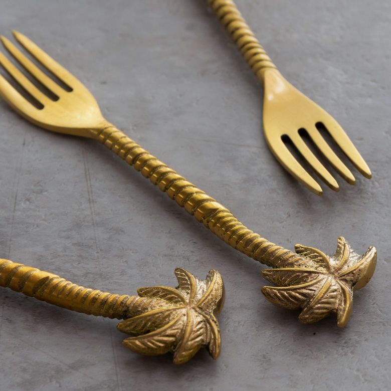 パームツリーデザインの真鍮フォーク
