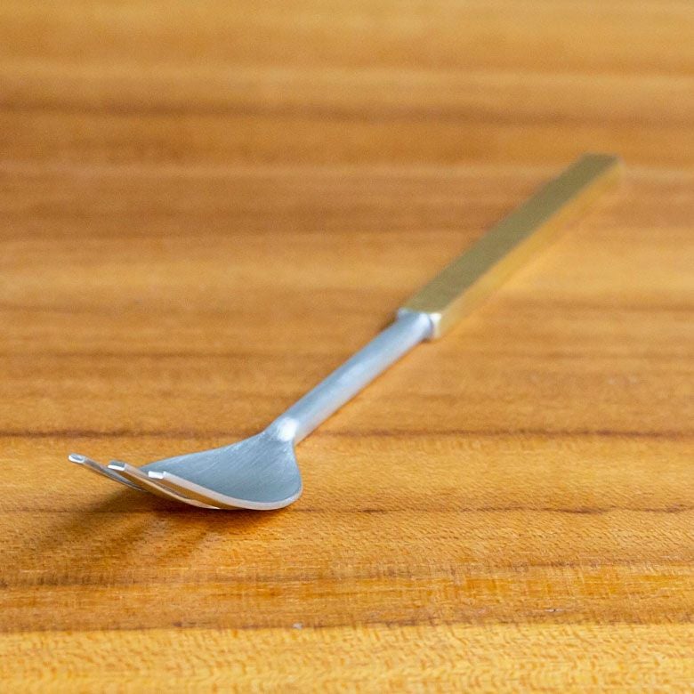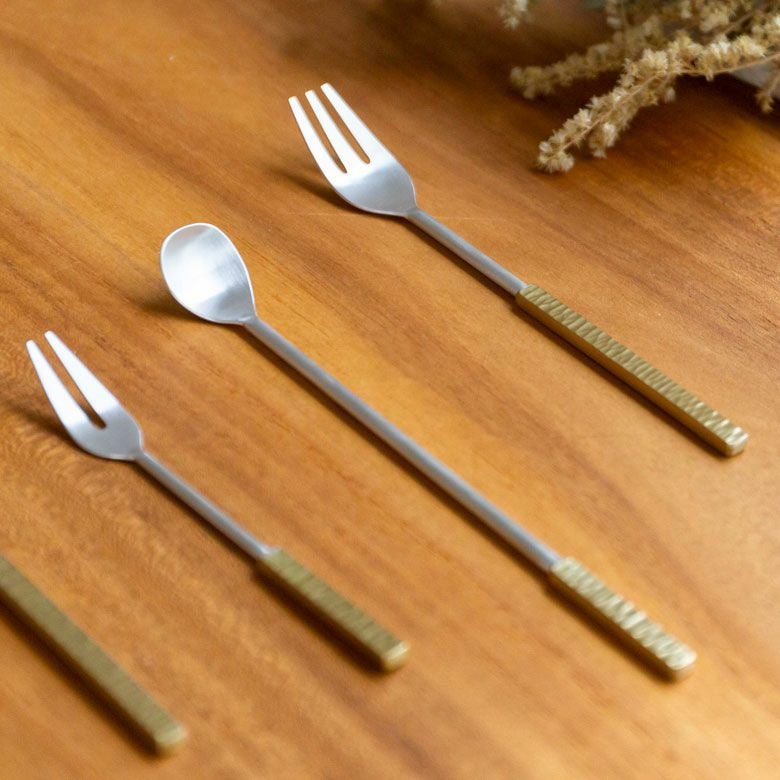ケーキフォークとして丁度良く、持ち手が少し長のでサラダやいろんなスイーツにも使えます。サイズで迷ったらこちらがオススメです。スプーンMとセット使いも◎