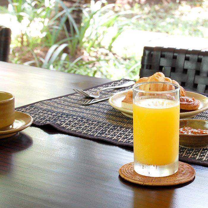 | ご注意 | ※ハンドメイドのためサイズ・形が写真と異なる場合があります。 ※表示される画像の色は、モニターやブラウザ等によって実際の商品と若干異なる場合がございます。 ※複数枚を同時にお買い求めの際はサイズに若干のバラつきがでる場合があります。 ※乾燥によってアタの繊維が収縮すると”ゆがみ”が生じる場合があります。小さなゆがみであれば逆方向にひねれば解消することができます。強くひねり過ぎると壊れる場合もありますのでご注意ください。 ※ココナッツの殻で燻していますので、香ばしい香りがします。 ※アタのコースターやランチョンマットは中央部分に編み始めがあり、その部分は盛り上がりがあるので多少のガタつきがございます。 |