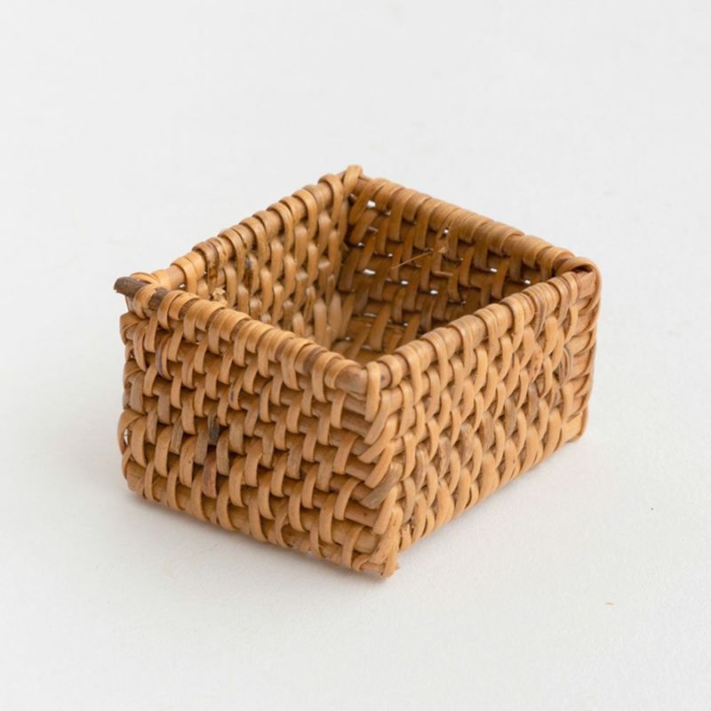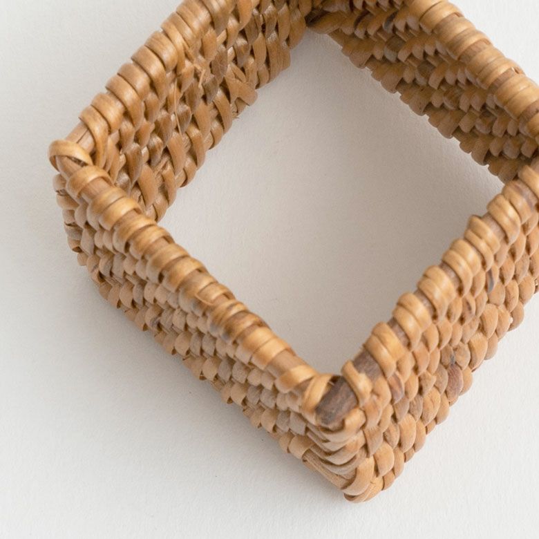 アタとラタンで編まれた四角いナプキンリング
